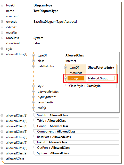 A group can be defined for each palette entry in the DiagramType.